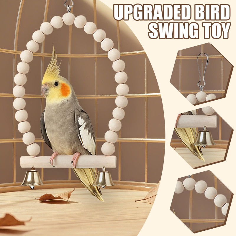 Jiaoshou Pan 9 Piece Bird Toy Set, Wooden Parrot Toy, Budgie Toy with Swing, Ladder, Bell & Chew Toy for Parakeets, Love Birds, Finches and Cockatiels (Wood)