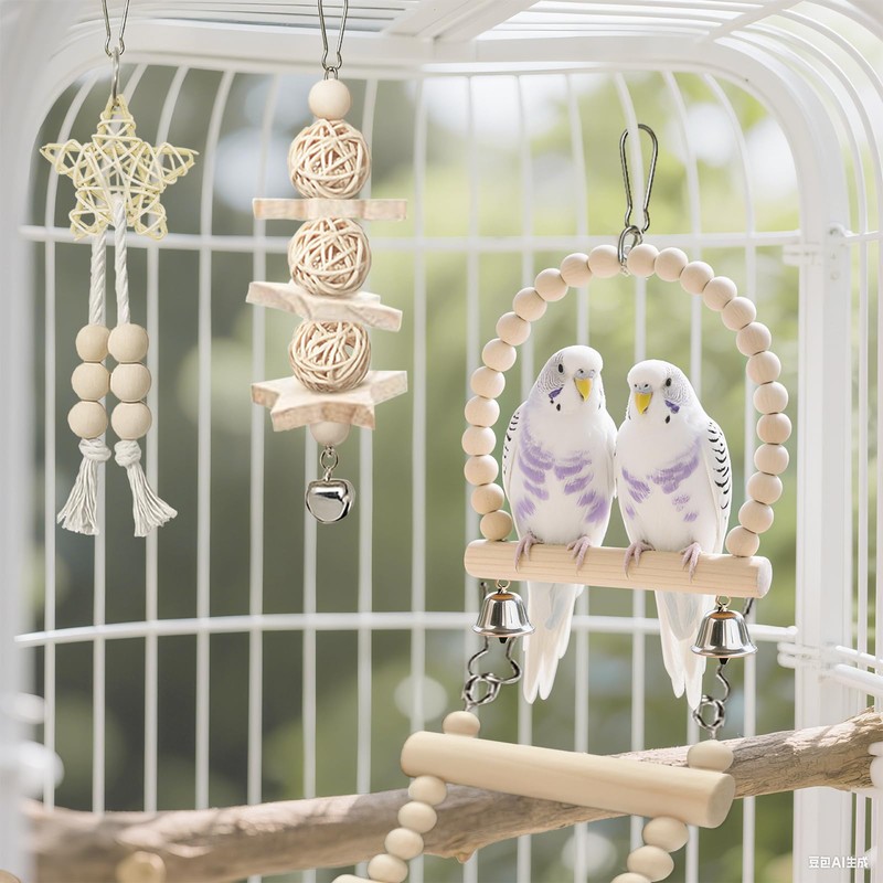 - SUITABLE FOR MANY BIRDS - The set is ideal for small to medium sized ornamental birds such as budgies, cockatiels, parrots, finches or love birds. Even in mixed cages, this bird toy brings variety and makes the cage not only functional, but also vibrant.
