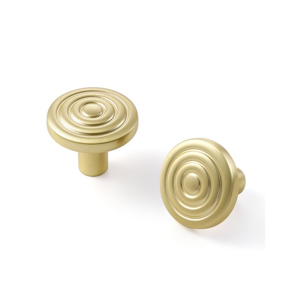 JIASENBAO 5 Pack Gold Cabinet Knobs Round Brushed Brass Drawer Pulls Circle Bathroom Dresser Handles Hardware Zinc Alloy