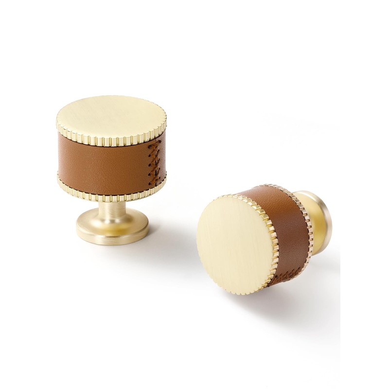 JIASENBAO Leather Drawer Pulls Round 5 Pack Gold Brown Leather Handles Cabinet knobs for Kitchen Bathroom Drawers Dressers