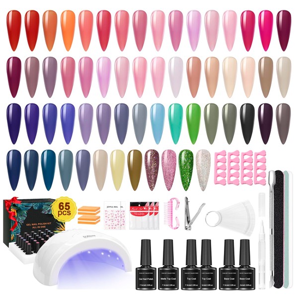 JIASHENG Gel Nail Polish Kit with UV Light, 60 Colors Nail Polish Set with Base Matte Glossy Top Coat, Gel Nail Manicure Tools Kit for Beginner Nail Art Salon