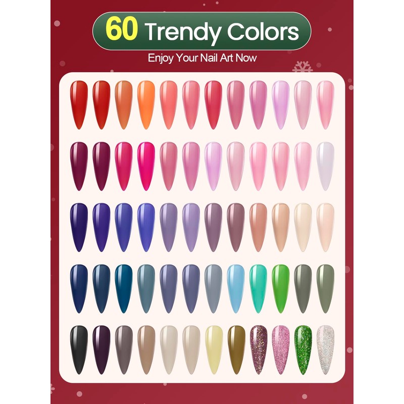 - 60 Colors for Endless Nail Art Creativity - From classic shades (black, white, nude) to trendy glitters (pink, blue, green), this kit supports glossy/matte finishes for holidays (Christmas, Halloween, Valentine's Day) or daily wear. Mix colors for custom designs!