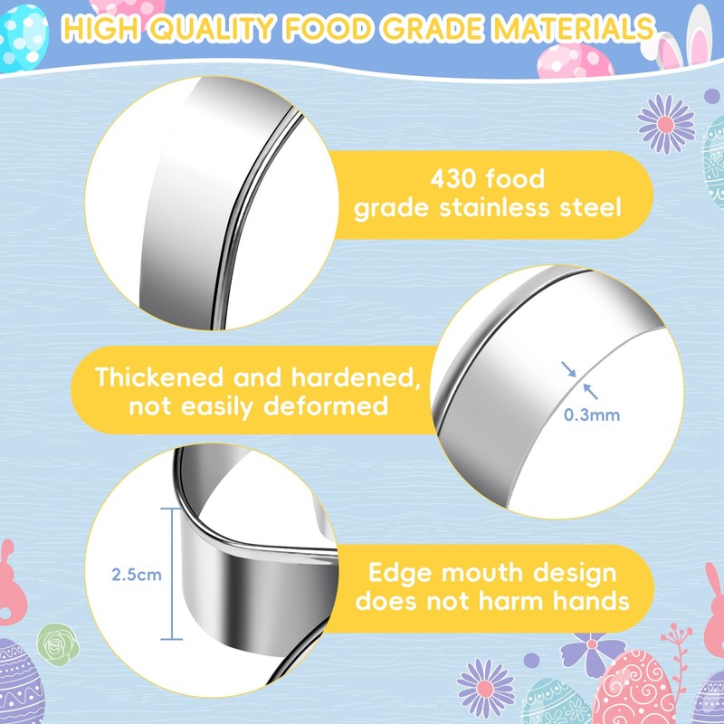 - High-quality material: our cookie cutter stainless steel Easter is made of stainless steel from food, which is non-toxic and environmentally friendly. It is safe and convenient to use, high temperature resistance, with non-stick coating, easy to demould. The mould is not easy to deform, easy to clean and does not rust and can be reused. You and your children can use it with confidence!