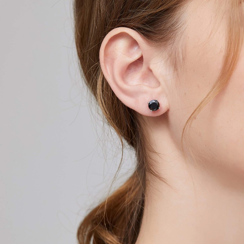 JiaYang Black Diamond Stud Earrings with Screw Back Sterling Silver Cubic Zirconia Stud Earrings for Women Men - 6MM