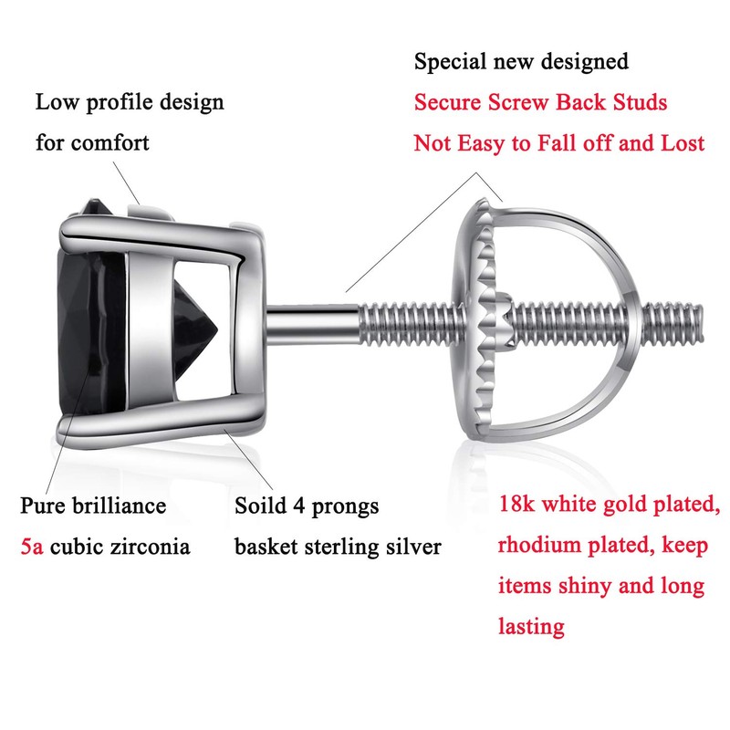 - Screw on Back Earrings Studs 4mm 5mm 6mm 7mm 8mm Cubic Zirconia Stud Earrings Sets. 925 Sterling Silver Round Cut and Square Cut CZ Diamond Stud Earrings with Screw Backs.