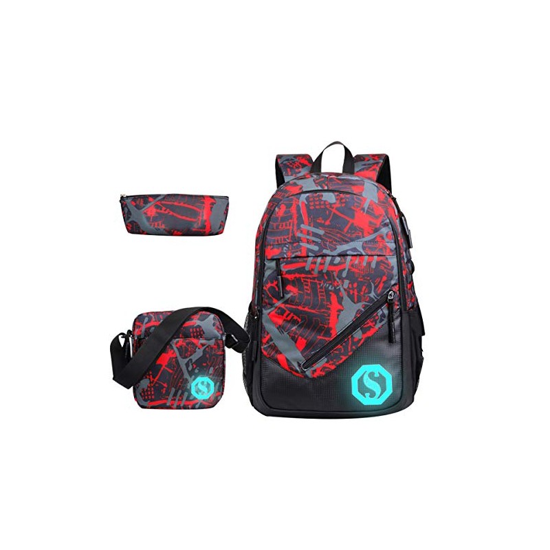 JiaYou Boy Girl Unisex 20L Fashion School Bag Backpack Bookbag with Florescent Mark 3 Sets/2 Sets (20L, Color G 3Sets)