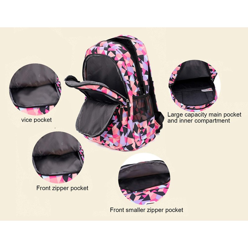 JiaYou Girl Geometric Printed Primary Junior High University School Bag Bookbag 3pcs Backpack Sets(2# Purple-3pcs,35 L)