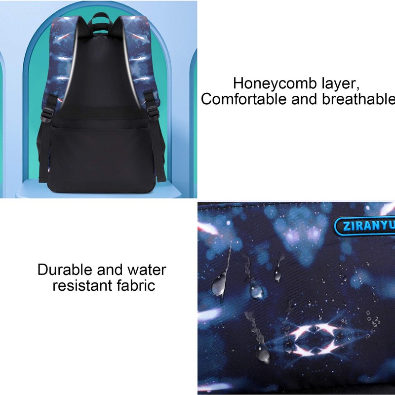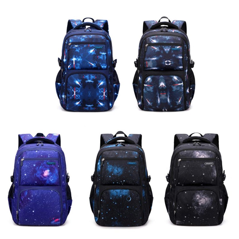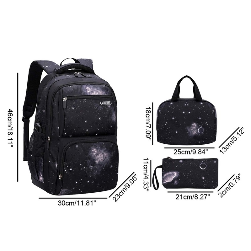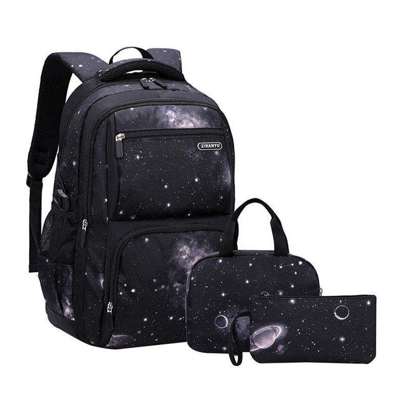 JiaYou Space Pattern Galaxy Backpack Boys Primary Junior Middle School Daypack Men High Middle School Laptop Bag(Star-Black,3Pcs Backpack Set)