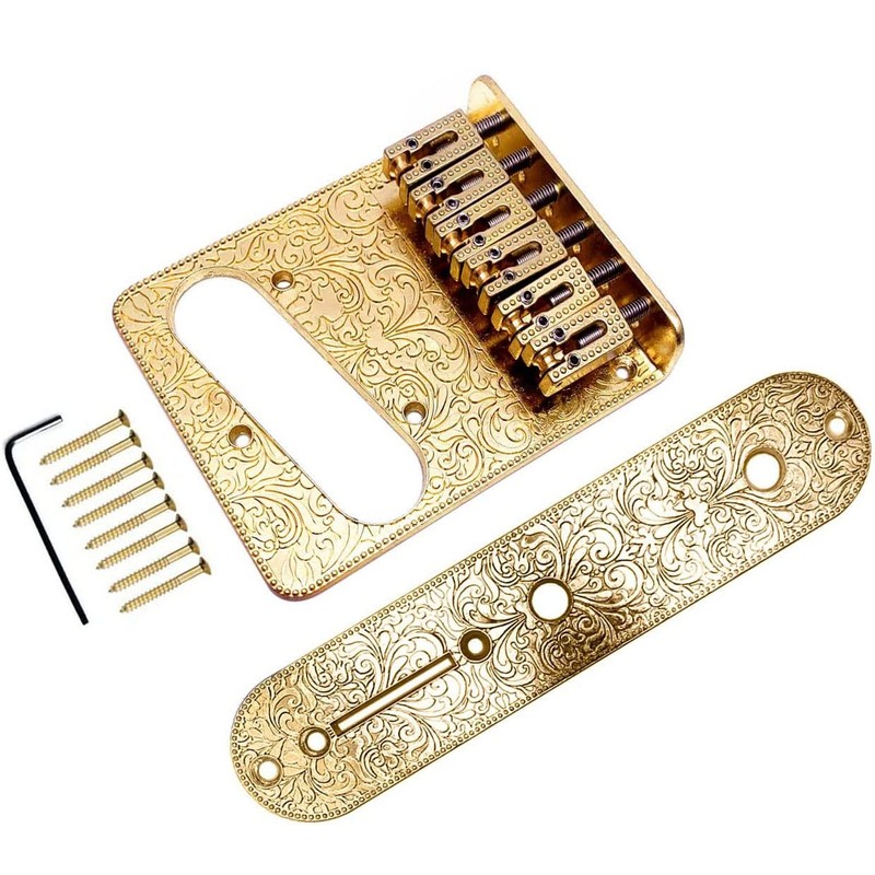 This is a beautiful and very well-made Guitar Parts hardware kit, surface engraving bridge plate and Control Plate with six adjustable block-style roller saddles. Elegant and beautiful printing pattern design adds unique style to your guitar. Adjustable intonation and saddle height, brand new and in mint condition. Used in most Standard Series Telecaster models.