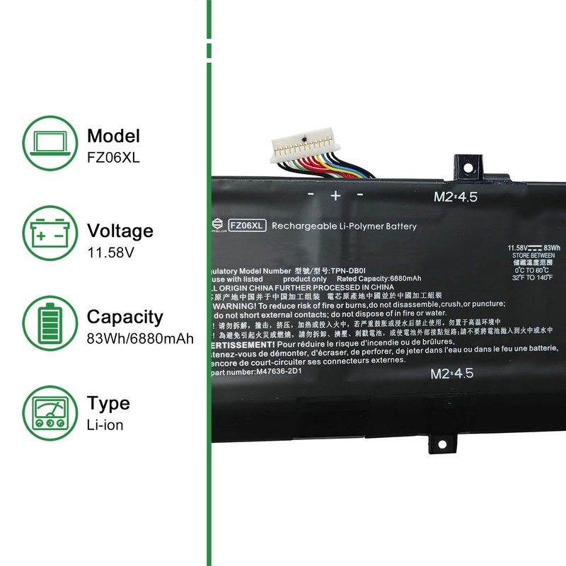 - Replacement for Part Number: FZ06XL M48025-005 FZ06083XL TPN-DB0I M47636-2D1.