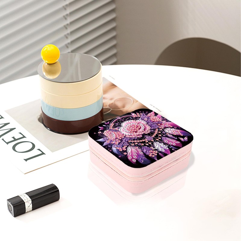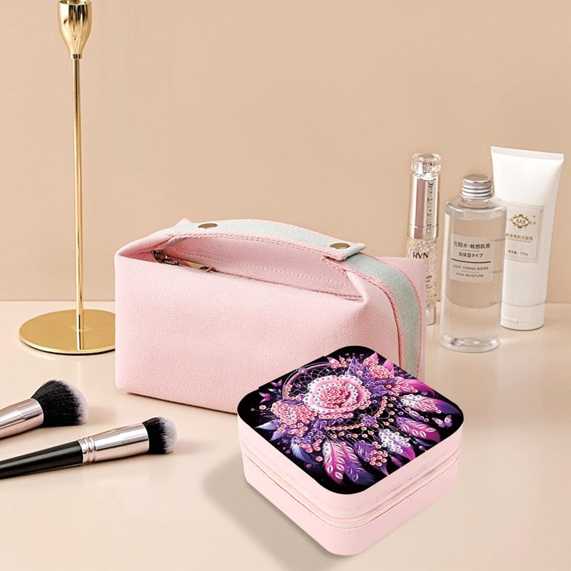 JICFDAO Diamond Painting Reise Schmuckkasten 9.5x9.5cm Schmuckkoffer Schmuckkästchen Damen Schmuck Organizer Schmuckbox Mini Schmuck Reiseetui für Ringe Ohrringe Halskette Geschenk Traumfänger Rosa