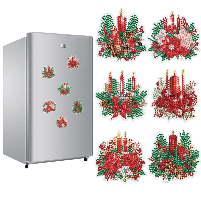 JICFDAO Pack of 6 Diamond Painting Magnets Fridge Advent Wreath Diamond Painting Magnets Fridge Kits Diamond Painting Stickers for Adults Christmas Decoration for Whiteboards Classrooms Offices