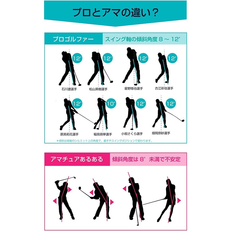 • Patent pending, inclination angle! Are your body angled unstable when you swing? The pro golfer has a swing axis tilt angle of 8-12 degrees. To create this inclination angle, we solved it by reinforcing it with JICSOLE! Incline to the ball of the ball of the ball and assist in maintaining the tilt angle of the swing axis