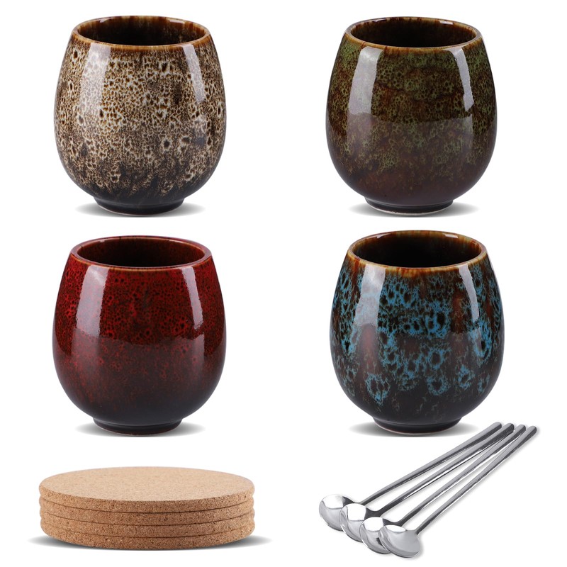 • What You Will Get: You will get 4 sets of Chinese kung fu tea cups in different colors (red, blue, green, brown), including four teacups, four cork coasters, and four teaspoons.The cup size: 3.1*3.2 inches, spoon size: 5.2*1.2inches, coaster size: 3.9*0.2inches, capacity: 200ml. It will give you an enjoyable tasting tea moment