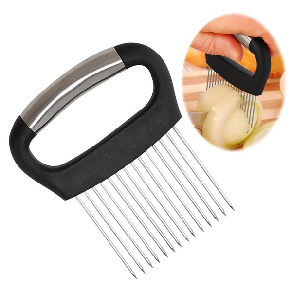 • 【High Quality】Our onion slicer is made of durable 304 stainless steel, which will not rust, and the steel needles are sharp, wear-resistant and not easy to deform