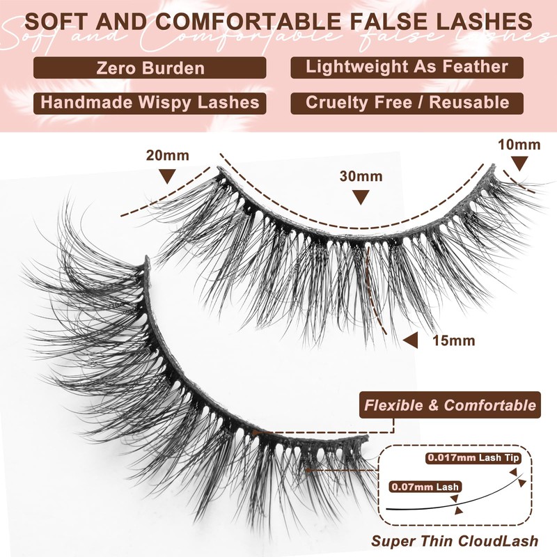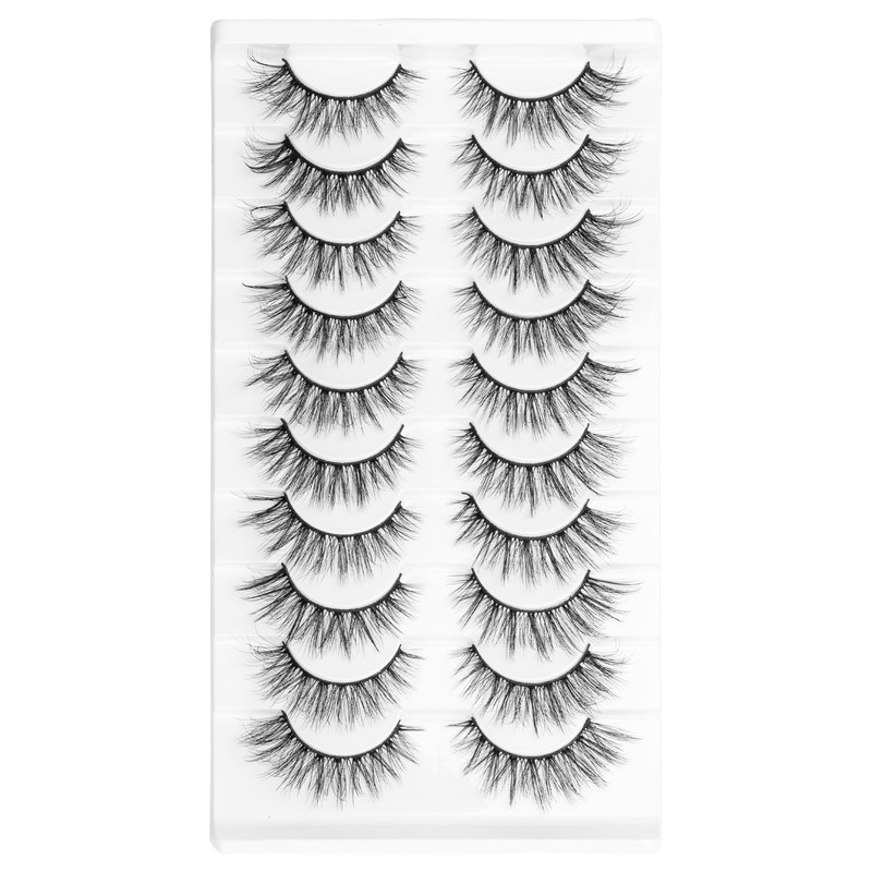JIECAI Mink Lashes Fluff False Eyelashes Cat Eye 8D Volume Lashes Wispy Pestañas Postizas D Curl Fake Lash Extension Eyelash Strips Natural Look 10 Pairs Pack, Wispy Cat