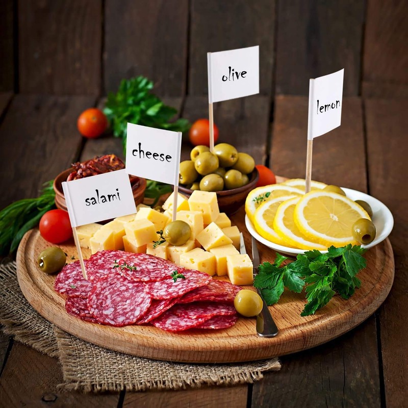 With these blank flags, you can write some important messages like funny sayings on them. This is a good way to make your food more unique and personal. Suitable for any situation, whether it is crafts or food