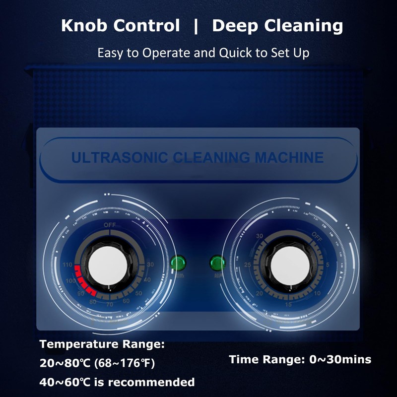 - The Ultrasonic Cleaning Machine Has Timer And Heater Function: 0~30mins time settings, heating range from 20~80℃ help to degrease and dewax, definitely meet your different cleaning needs