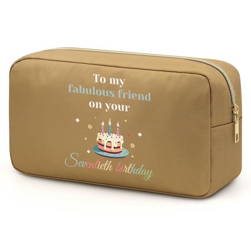 - ·70th Birthday Gifts for Women:The 70th cosmetic bag is a perfect gift for women 70 years old birthday. They are preparing to celebrate their 70th birthday and relive the good memories of the past with family and friends. It's definitely a great present to gift this makeup bag on the important day of her 70th birthday. 70th birthday gifts for woman, best gifts for 70 year old women.