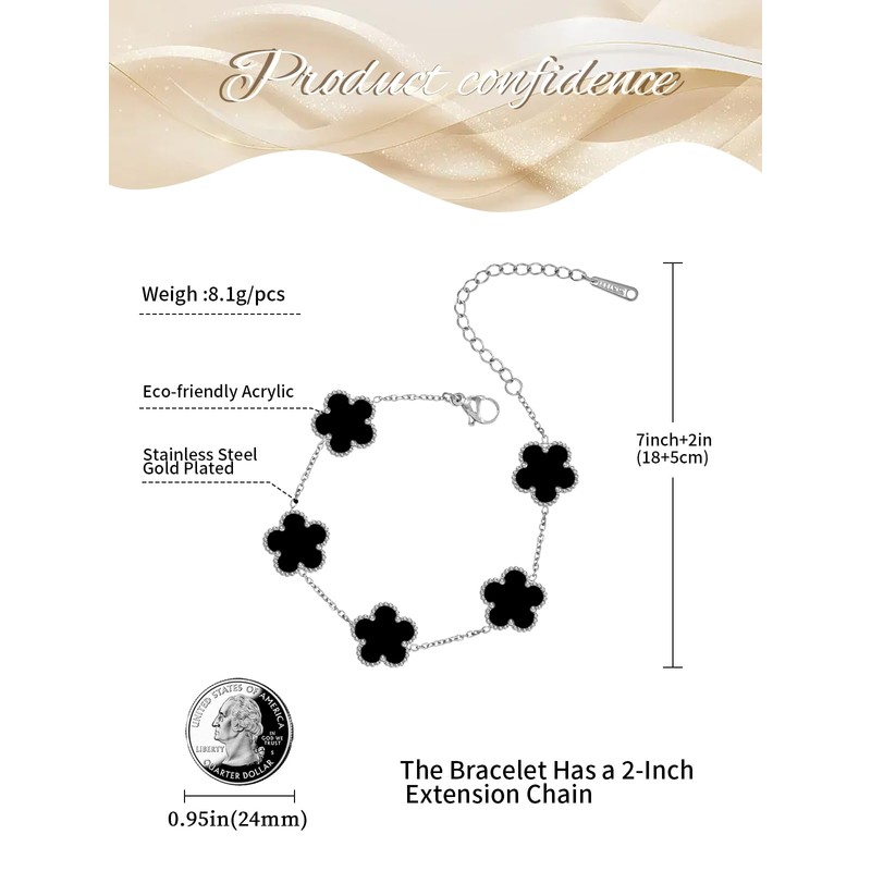 - ❤SPECIFICATIONS❤Bracelet: Flower 13 mm(L)/13 mm(H) | 8g(W) Adjustable Chain:7+2 inch | clasp: lobster claw.