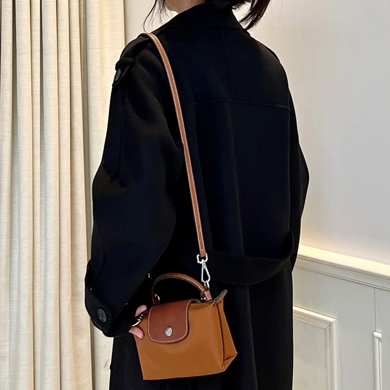 jiesinlov Cowhide Leather Bag Strap Conversion Kit Replacement Adjustable Crossbody Shoulder Strap for Le Pliage Pouch, Brown silver, Unit size