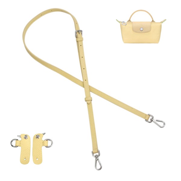 jiesinlov Cowhide Leather Bag Strap Conversion Kit Replacement Adjustable Crossbody Shoulder Strap for Le Pliage Pouch (Mini Light Yellow)