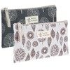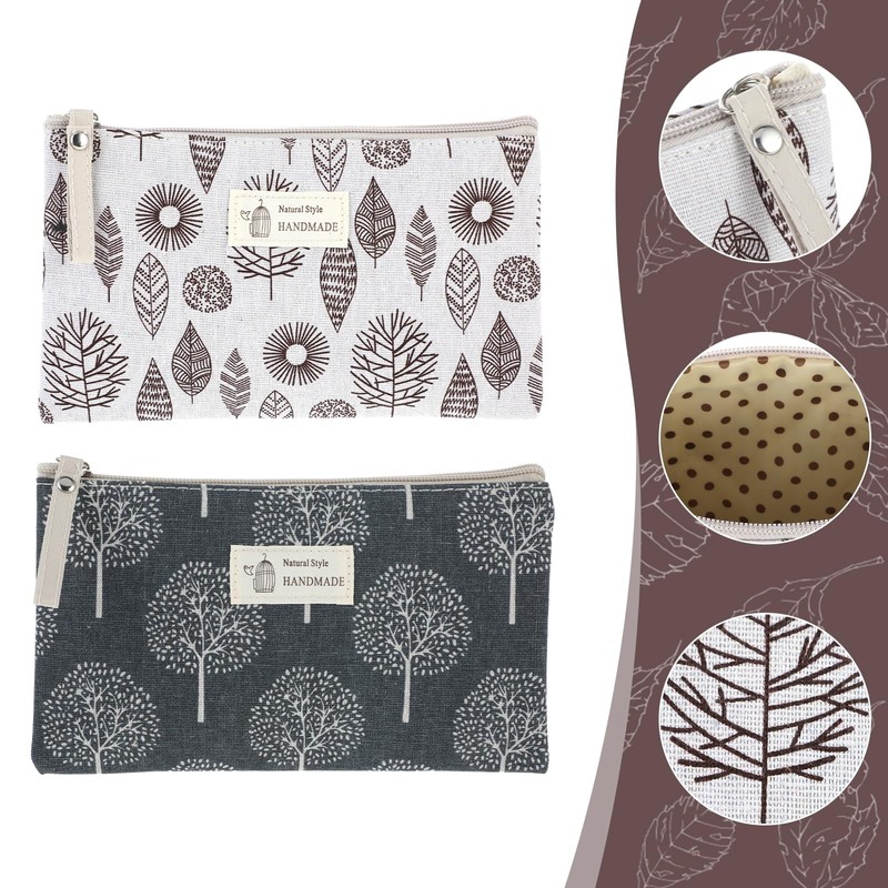 JIEYAO 2 Pcs Small Canvas Makeup Bags, Cute Cosmetic Bag, Printed Zipper Pouch Travel Toiletry Bag Multi-Function Organizer Bag Gift for Women Girls Christmas Stocking Stuffers(Leaf+Tree)