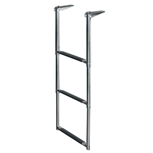 - 3 Step Telescoping Drop Ladder, telescopes and folds up on to deck or swim platform