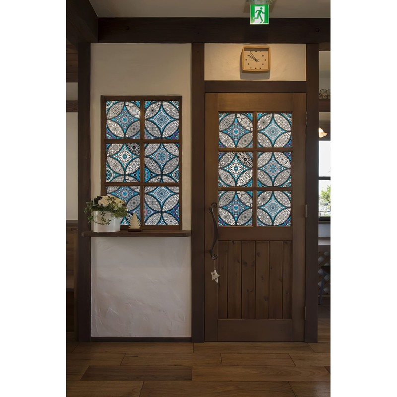 JiffDiff Blue Window Privacy Film Decorative Window Tint Film Stained Glass Window Clings Static Cling Decorative Window Film Sun Blocking Heat Control Window Covering Film for Home