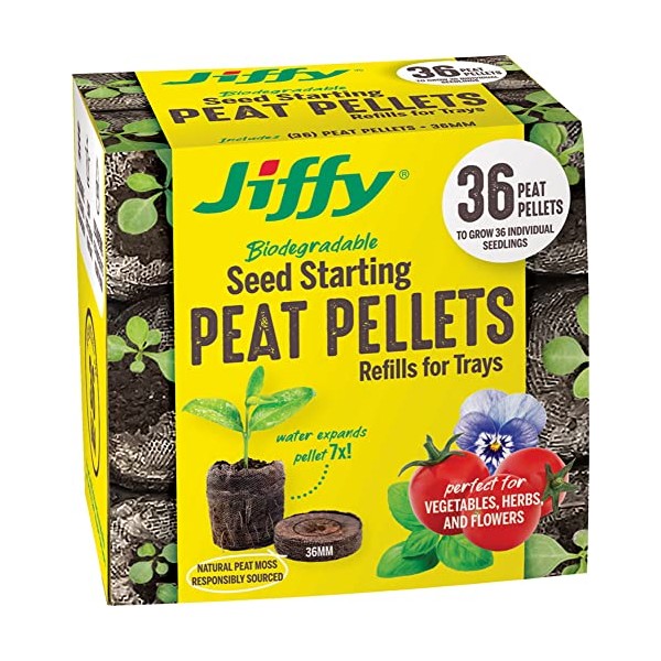 • Jiffy 36mm Pellet Refill pack comes with 36 Jiffy pellets with eco-friendly, biodegradable netting.