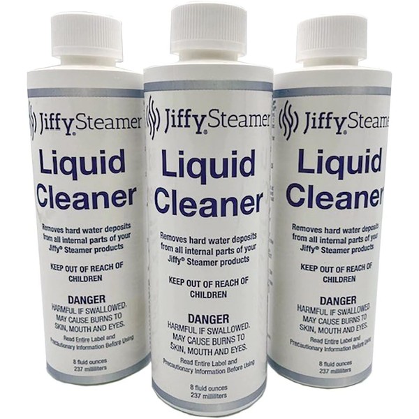 Our unique Liquid Cleaner removes hard water deposits from Jiffy® Steamers. It is easy to use and works on all Jiffy® Steamer models. It is suggested to use this cleaner as a preventative solution every 3 to 6 months depending on the quality of your water and frequent usage of the steamer. Three 10 ounce bottles per package. This product is available for UPS or FedEx ground shipping only within the 48 contiguous States.