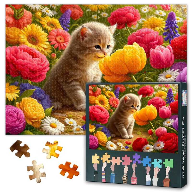 Jigsaw Puzzles 1000 Pieces for Adults, Kitten Jigsaw Puzzle, Cat Amidst a Flower 1000 Piece Puzzles, Intellectual Challenge Puzzle Educational Toy Finished Size 50x70cm
