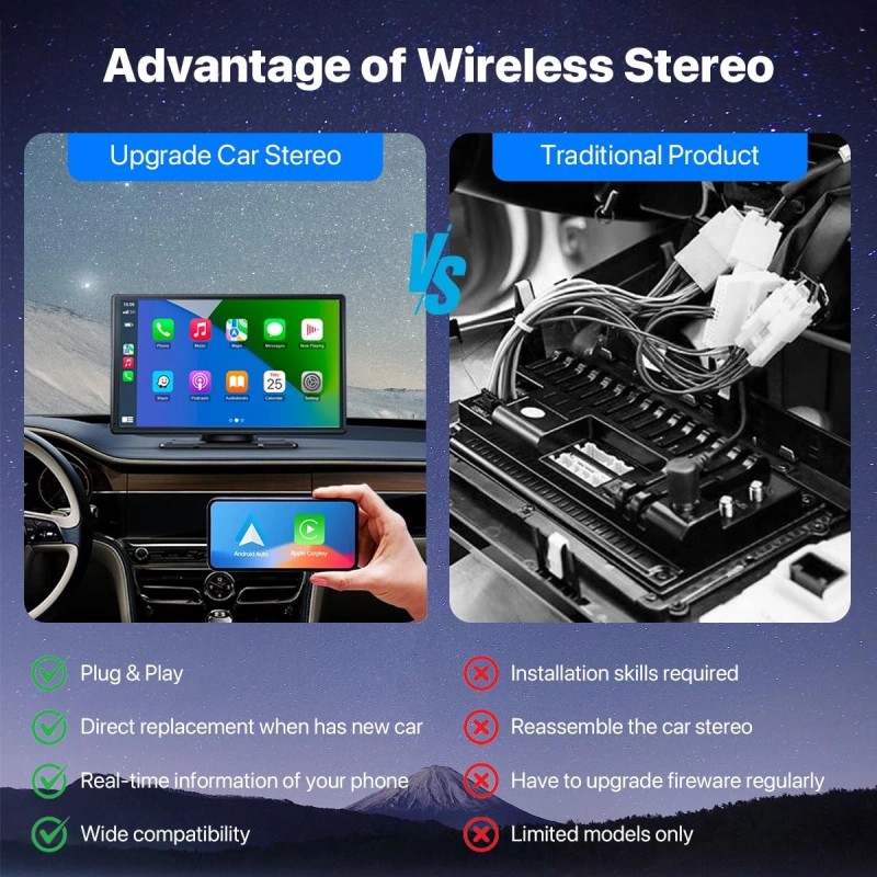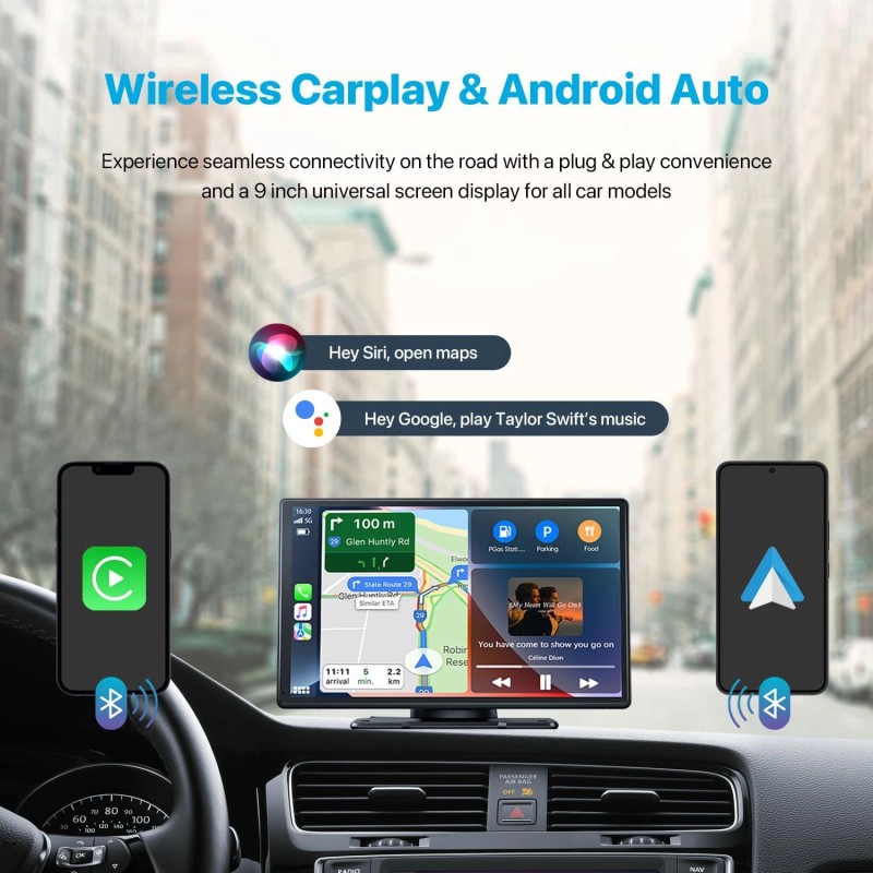 - Supports Wireless Apple CarPlay & Wireless Android auto & Mirror Link, you can make /answer phone calls, listen to music, navigate in real-time, and more.