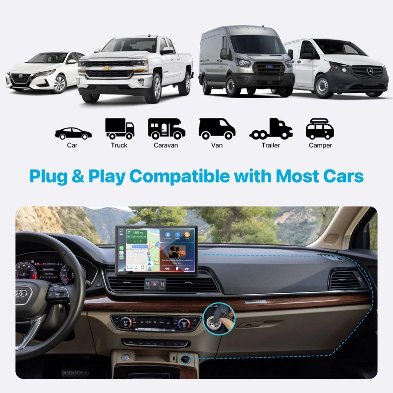 🚗【Portable 9 Inch HD IPS Touch Screen】Upgrade your car's entertainment system with our portable Apple Carplay screen. Equipped with larger 9 inch IPS display screen,which provides a wider and clearer viewing experience. Adopting the new chips which ensure the higher sensitive touch and seamless control,enjoy an excellent driving experience