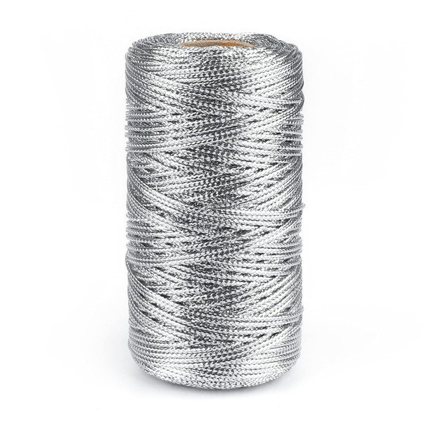 jijAcraft 100M Silver Twine String, 1.5mm Thick String Wrapping Cord for DIY Craft Making Gift Wrapping