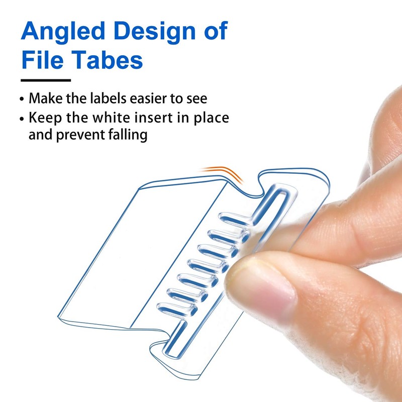 - Easy to Use: The blank paper inserts can be put inside the vertical slots of clear plastic tabs, then easily slid into the folder slots. Sturdy material, durable and reusable