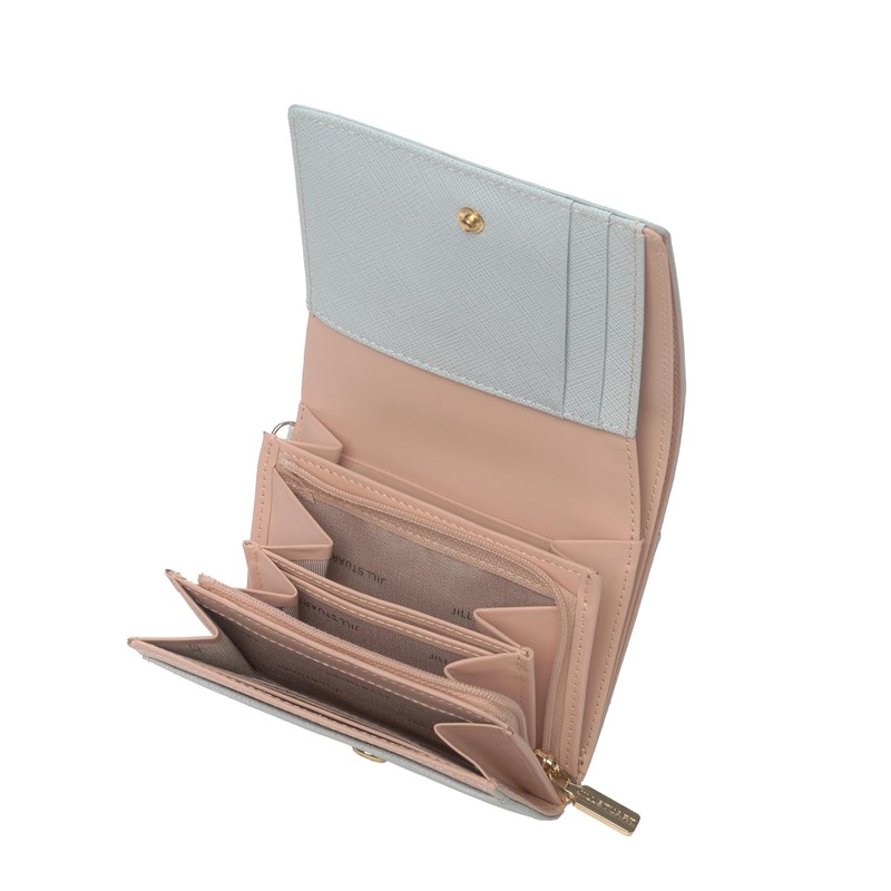 Jill Stuart Gloria JSLW3AS2 Cowhide Saffiano Leather Glitter Bifold Slim Wallet Cover Wallet Thin Compact Simple with Original Charm Ladies Fashionable Adult Cute Ice Blue, ice blue, One size