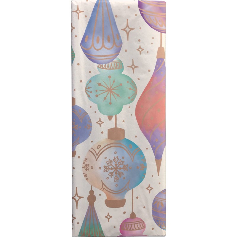 Jillson & Roberts 20" x 30" Printed Christmas Gift Tissue, Watercolor Ornaments (24 Folded Sheets)