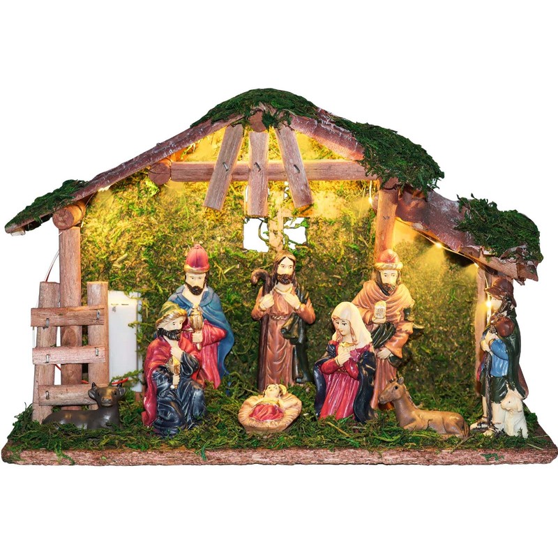 - Christmas Nativity Set with lights: Our Nativity set comes with a lighted stable, which will provides warm ambient lighting to Nativity scene. It is a classic, traditional way to add to your holiday decor for Decorate your home and you can teach children the story of Jesus' birth at the same time.