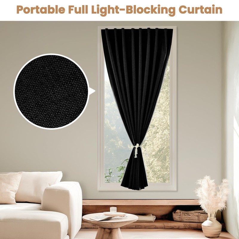 Jilron Adhesive Curtain,100% Blackout Curtains, No Drilling, Suitable for Multi-Scenes Privacy Protection (Black - W35 × L80 in)
