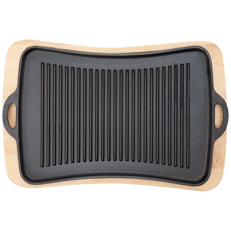 Jim Beam Cast Iron Fajita Pan with Wooden Trivet, Pre-Seasoned Ideal for Barbecuing and Camping, Large, Black