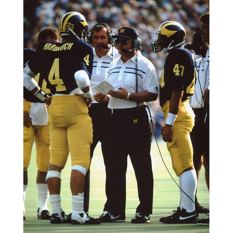 JIM HARBAUGH AND BO SCHEMBECHLER MICHIGAN WOLVERINES 8X10 SPORTS ACTION PHOTO (XLT)