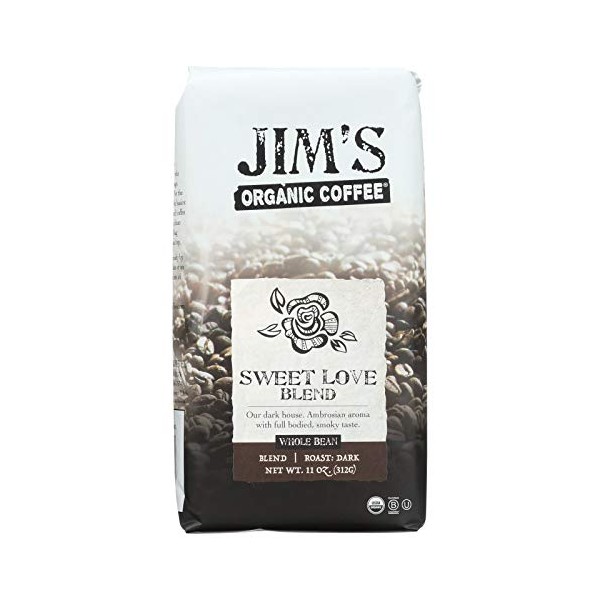 Jim’s Organic Coffee – Sweet Love Blend – Whole Bean, Dark Roast, Bold 11 oz Bag