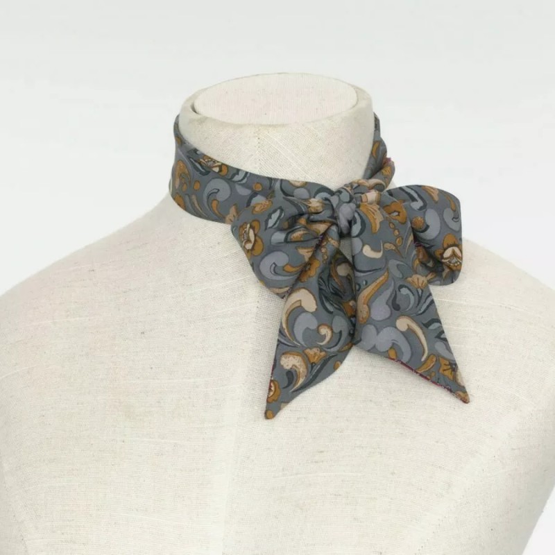 Jim Shore Designs 4037747 ALEXYS TWO-SIDED PONYTAIL SCARF, 100% SILK, New