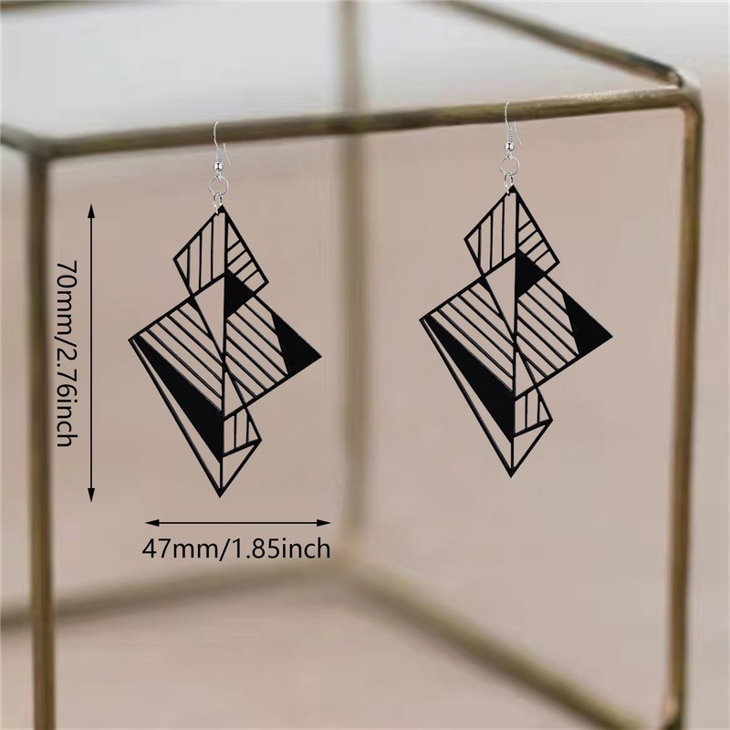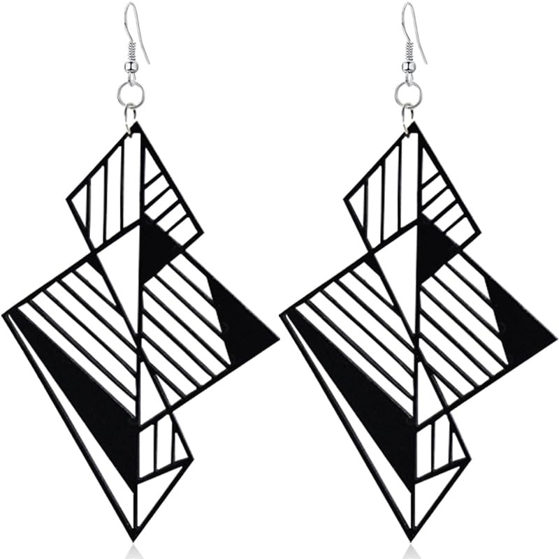 JIMARIN Handmade Lightweight 70s 80s Retro Hollow Chandelier Dangle Drop Earrings Minimalist Large Black White Geometry Acrylic Hook Earrings for Women (Black)