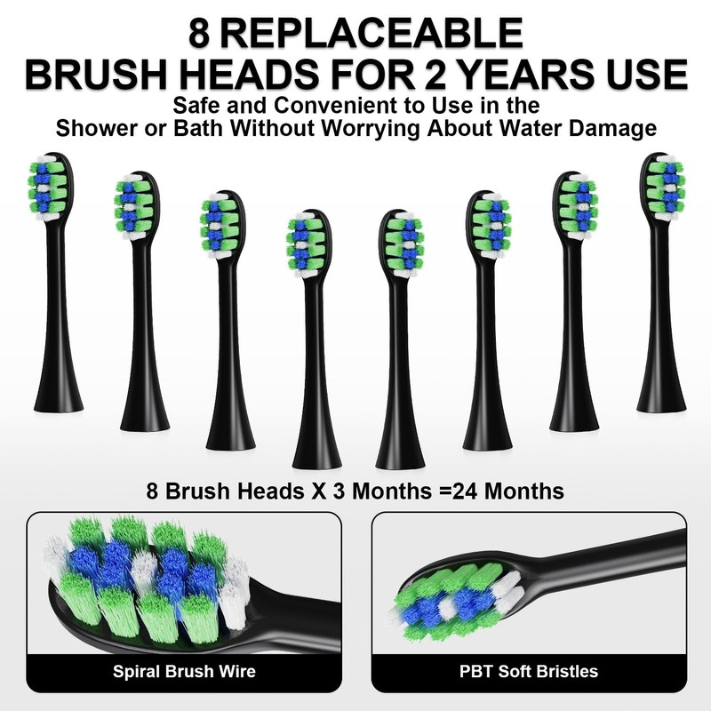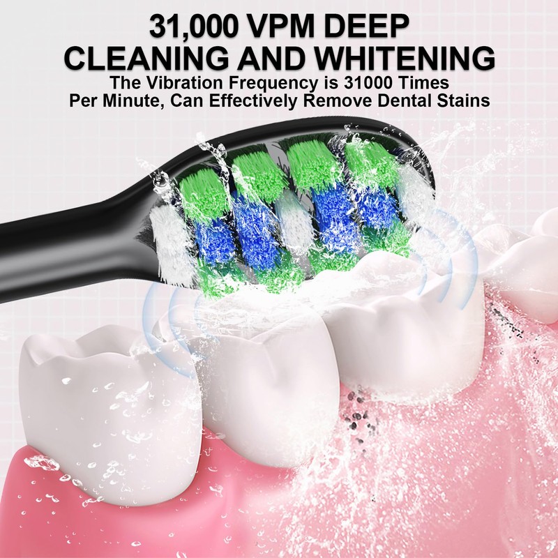- 💝🦷💝【Powerful and Effective Cleaning】Our Sonic Electric Toothbrush, equipped with 8 Replaceable DuPont brush heads and a high vibrating frequency of approximately 31000 times per minute, provides a thorough and efficient cleaning experience. It effectively removes stains, leaving your teeth feeling clean and refreshed.