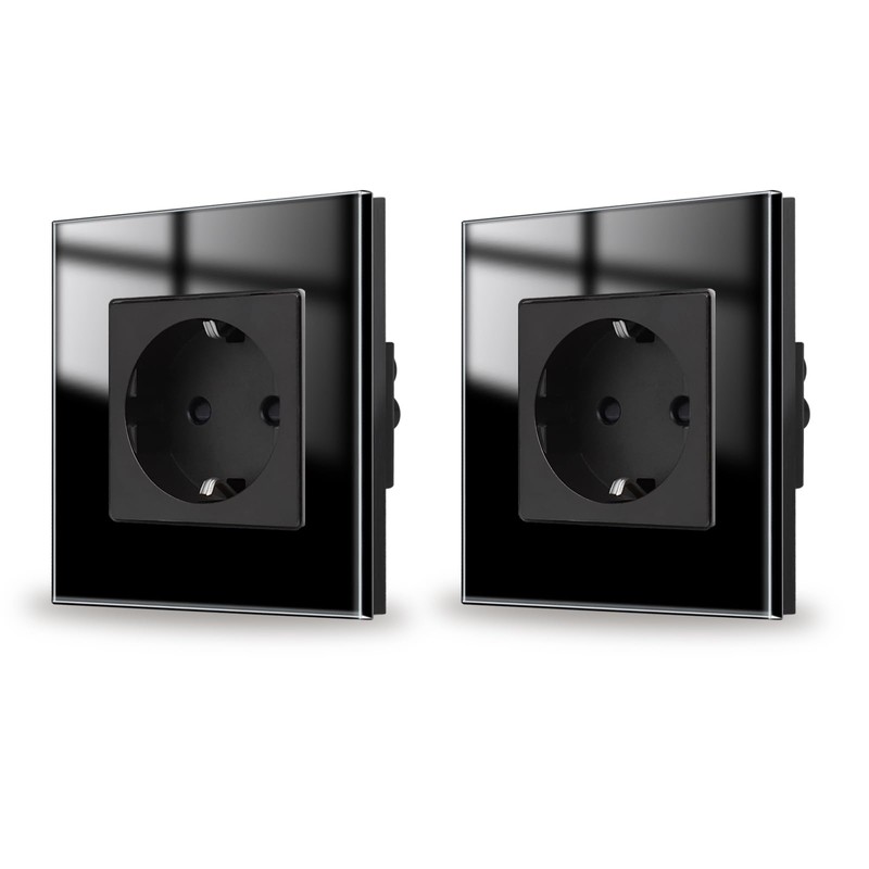 JIMEIDA 2 Pack Socket Glass Black Flush-Mounted Schuko Sockets Protective Contact Wall Socket 16 Amp, 250 V, 86 mm x 86 mm