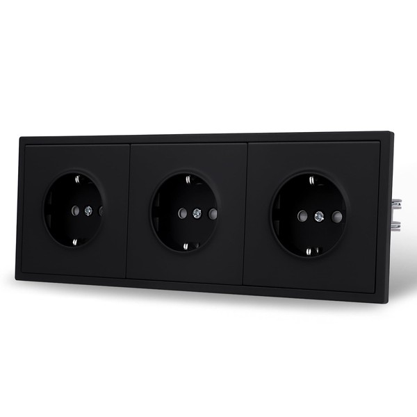 JIMEIDA 3 Socket Black Matt Flush-Mounted Smooth Skin Feel with Plug-In Terminal 16 Amp Socket Wall Socket (Cannot Be Installed Vertically)