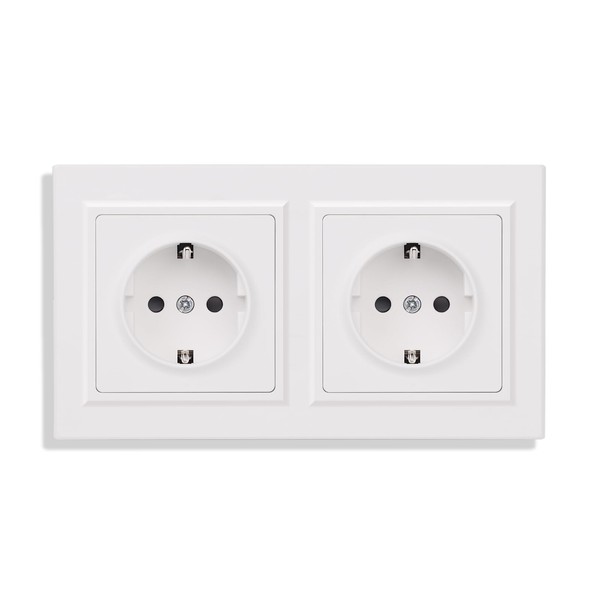 JIMEIDA Double Socket White Smooth PC Surface with Hooks, Not Vertical Mountable, 16 Amp Schuko Socket, 155 x 84 mm, 250 V
