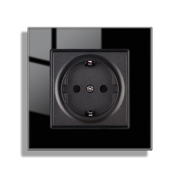 JIMEIDA Glass Socket Single Black Flush-Mounted Protective Contact Wall Socket Tempered Glass Panel Socket 86 mm x 86 mm, 16 Amp, 250 V